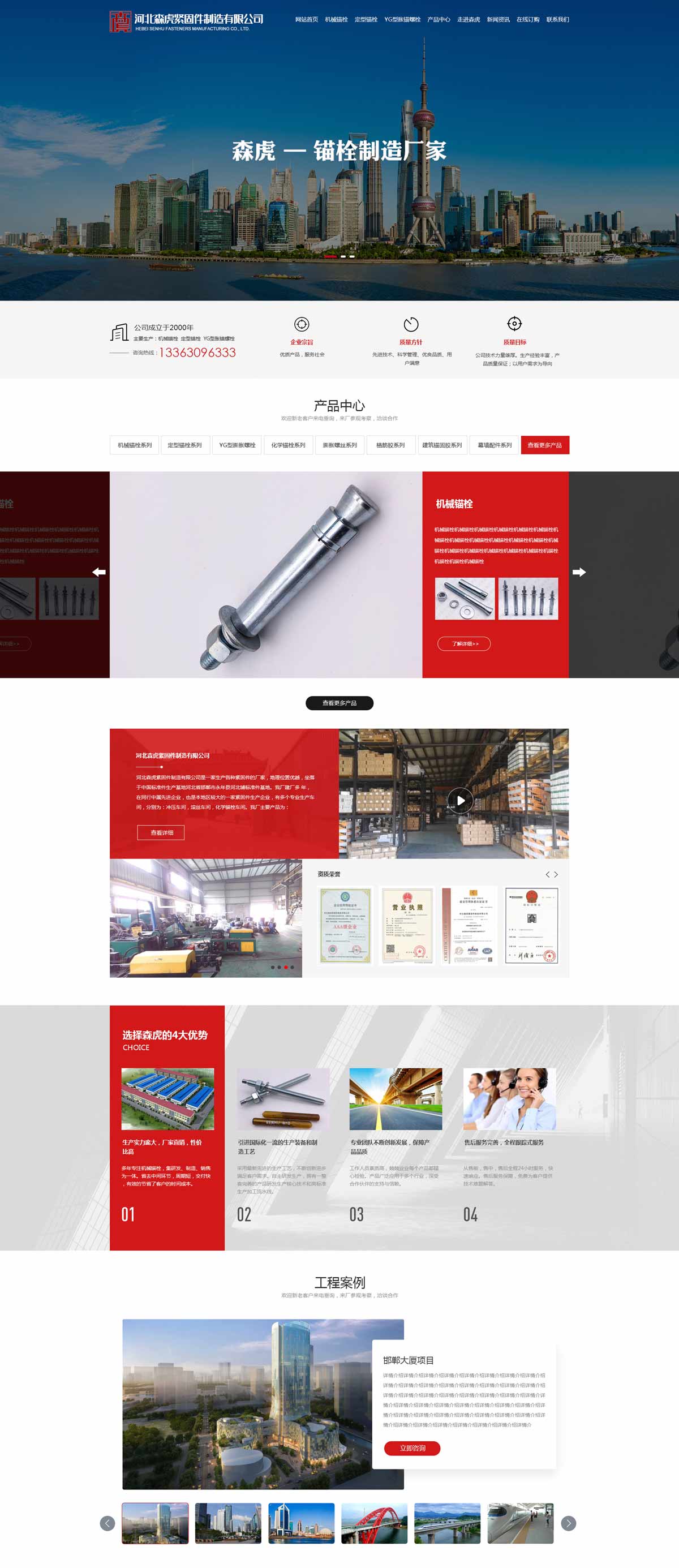 新聞?wù)?河北森虎緊固件制造有限公司成立于2000年,是建廠較早的緊固件企業(yè)。西臨京廣線,東臨京深高速,地理位置優(yōu)越,交通便利。 主要生產(chǎn):化學(xué)錨栓、機(jī)械錨栓、定型化學(xué)錨栓、高強(qiáng)度8.8級(jí)化學(xué)錨栓、自切底機(jī)械錨栓、車修壁虎,膨脹螺栓,植筋膠。